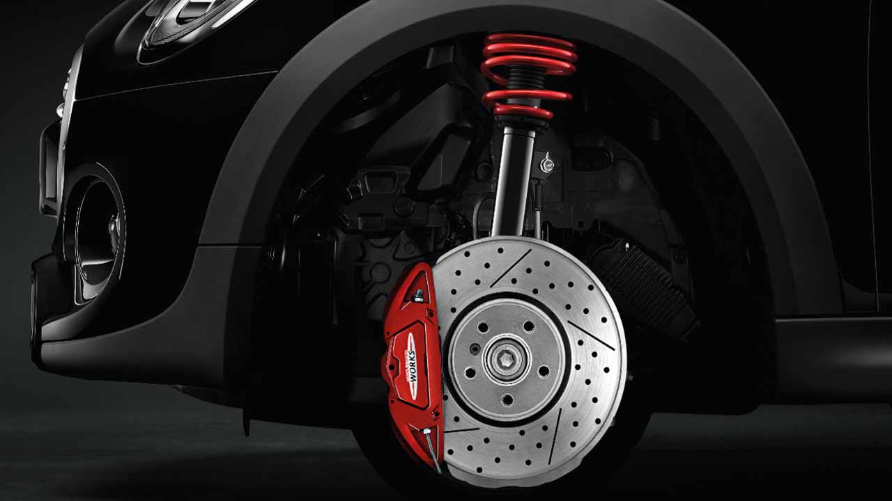 Height-adjustable Sport suspension (range: -10 mm to -30 mm), including coil springs in red. Components: two stainless steel complete suspension struts with adjustable spring plates for the front axle, two dampers for the rear axle, two single suspension struts with adjustable spring plate for the rear axle. For vehicles without Dynamic Damper Control (option 223).